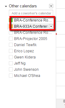 - Turn off/on the Resource Calendars you want to view